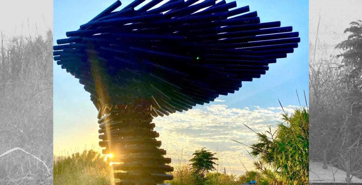 King’s creativity is especially displayed in his Singing Ringing Tree, only one of three in the world and proudly displayed in Austin. The story behind it is classic, and King tells it with laughter. “I got a phone call from a guy who said I was his ninth welder call. He sent me to a website that featured a picture of the largest wind chime sculpture in the world and said he wanted the same thing built for his farm. I immediately said yes, but he didn’t believe me. I don’t know how many times he asked, ‘Are you sure??’ The next morning, he flew the two original designers from the UK (who had also designed the infamous London Eye) to meet with me.”