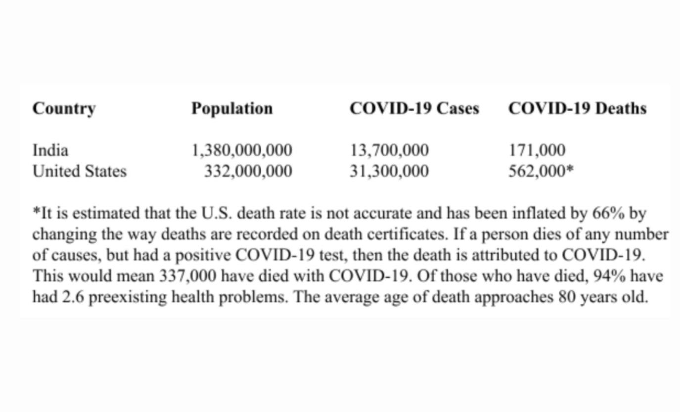 Let’s look at the facts by comparing the number of COVID-19 cases and deaths in both the United States and India.