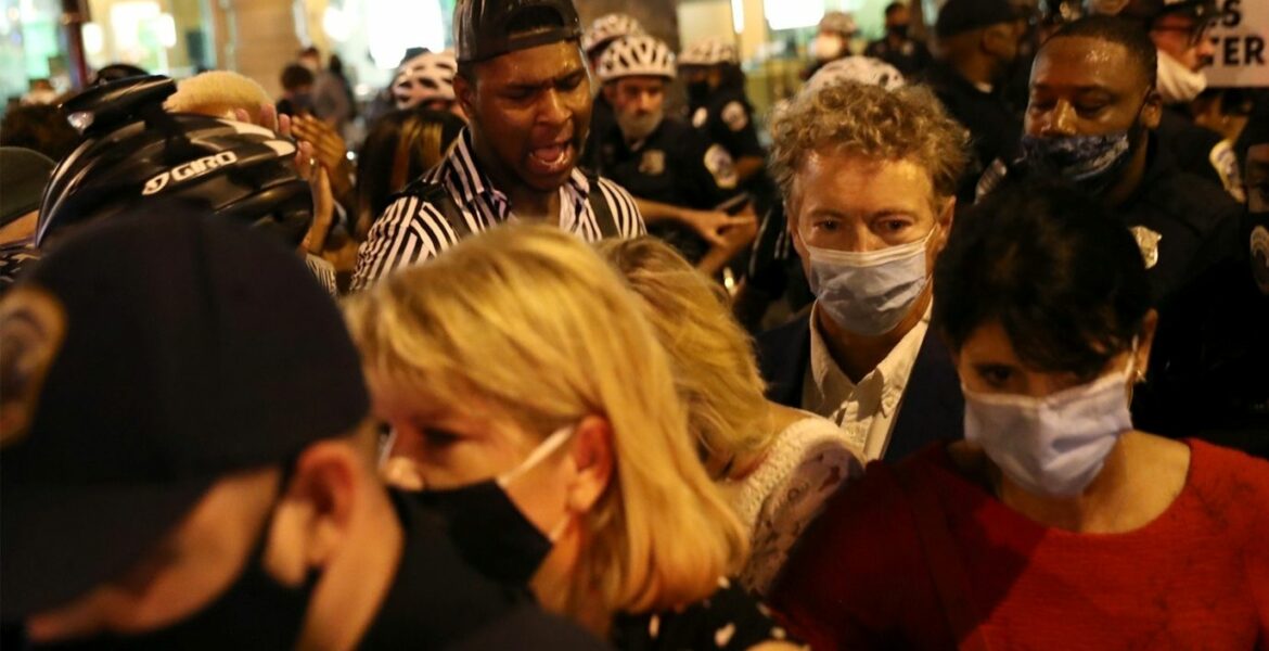 To be sure, I was not the primary target Senator Rand Paul, and his wife Kelley were walking with me. That night, the streets were eerily quiet after being closed to thru traffic, and by God’s grace there were officers stationed to divert vehicles. As we walked, in the most surreal moment of my life, a gang led by professional radicals spotted Senator Paul. A tall man in a black and white striped shirt shouted into a megaphone, “There’s Rand Paul! We quickly gathered behind the traffic officers as the crowd began to grow, ultimately reaching over a hundred. Realization dawned as I slowly turned around that I was completely vulnerable. The crowd grew louder, denser and more aggressive. My mind processed in slow motion as I thought, I may die or be severely injured right here in the street. So, I started to pray.