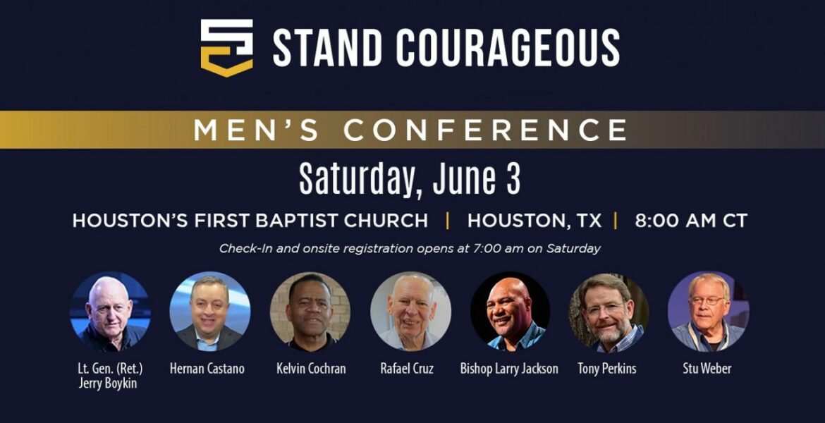 We encourage you to make plans to join Chief Kelvin Cochran and FRC President Tony Perkins for this Stand Courageous Men’s Conference on June 3, 2023 at Houston’s First Baptist Church (The Loop / First Campus), 7401 Katy Freeway, Houston, Texas 77024.