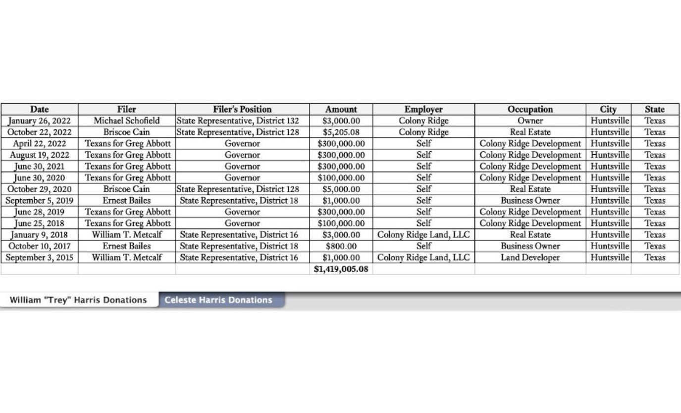The Harris family is one of Gov. Abbott’s top financial backers, and in accepting millions of dollars in their donations, Abbot has agreed to turn a blind eye to colonias, which create opportunities for cartels to easily enter the country illegally and set up camps right outside of our city.