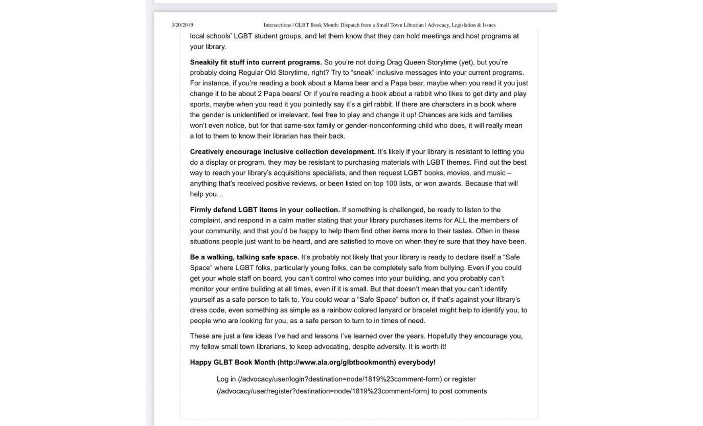 Annually, the Texas Library Association and the American Library Association put out recommended reading lists and awards lists for public school libraries. The school administrators then purchase these books with neither further inquiry nor content scanning.