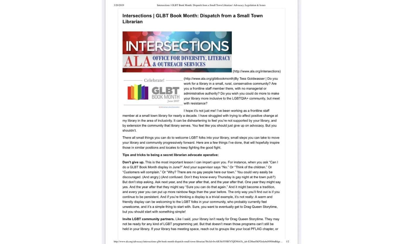 Sophia identified titles like Push and Let’s Talk About It throughout the state- not just in urban areas, but in some very rural, conservative areas.