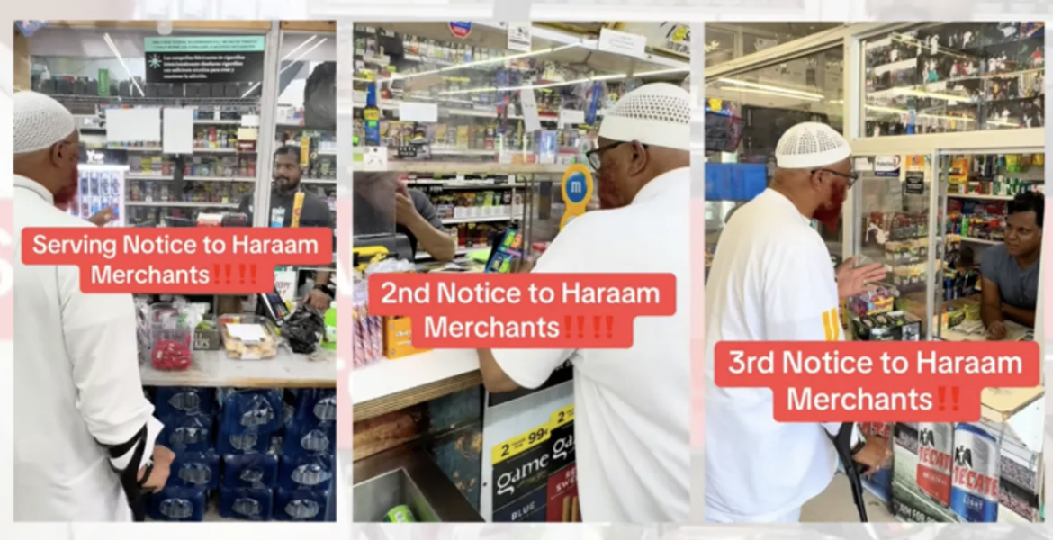 Imam F. Qasim ibn Ali Khan of Masjid At-Tawhid was seen in viral videos urging Muslim shop owners to comply with Islamic teachings by removing what Islam considers haram, or forbidden products. In the footage, Khan warned that businesses refusing to comply could be targeted by organized protests by the end of the month.